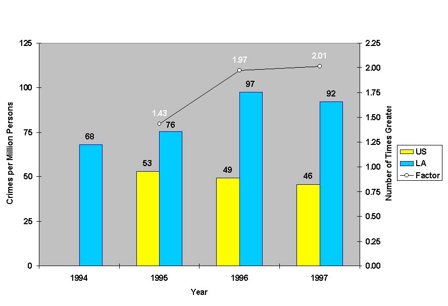 (As reported by police and sheriffs' departments only. US datanot available for 1994.)